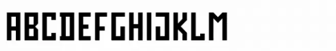 A geometric, grid-based font with bold, angular letterforms and a futuristic style.