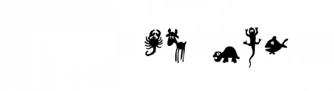 Cartoon animal pictogram font with bold, playful silhouettes.